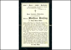 ∞ 19.2.1882 Mathias Rensing ; 7 Kinder, davon 3 jung † (3 Söhne, 1 Tochter verblieben) |