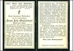 ∞ 1919 Johann Schlömer; 4 Kinder; verstarb an schweren Verletzungen infolge "Unglücksfalls" |