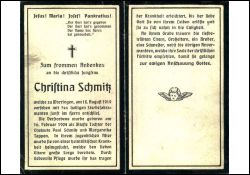 Eltern: Paul Schmitz und Margaretha geb. Tappen; 1 Bruder, 1 Schwester; "heimtückische Krankheit" |
