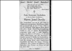 37 J.; ∞ 9.11.1938 Johanna Scholten aus Empel; 1 K.; Opfer des 2. Weltkrieges: Tod (nach längerem Leiden) durch Rauchvergiftung, welche er sich bei Bombenangriff zugezogen hatte |