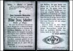 ∞ Franz Schneider † 10.2.1880; 10 Kinder, davon 8 † (2 Töchter verblieben) |