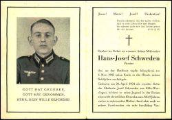 Gefallener 2. Weltkrieg; Eltern: Josef Schweden, Mutter † 1933; hatte "Zweitmutter"; Brüder |