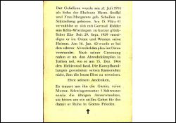 Gefallener 2. Weltkrieg; ∞ 15.3.1941 Gertrud Ridder (Köln-Worringen); 1 Schwester |