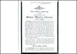 ∞ 15.8.1858 Adolf Sturm, Dackdecker; 5 Töchter, 4 Söhne, davon 4 Kinder † |