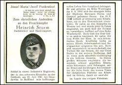 Gefallener 2. Weltkrieg; Eltern: Hermann Sturm und Gertrud geb. Sturm; 1 Bruder Kaspar † 21.7.1923, 1 Schwester; Dachdecker u. Bauklempner |