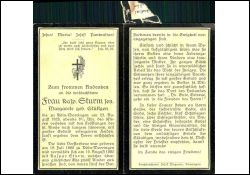 ∞ 19.8.1882 Kaspar Sturm; 12 Kinder, davon 5 †, (1 Sohn, 6 Töchter verblieben); 1 Bruder, 1 Schwester |