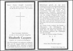 Mitgl. Jungfrauenkongregation; Eltern: Peter Theodor Cuypers u. Sibilla Katharina geb. Gerecht; lebte im Kreise ihrer Geschwister; längere Krankheit; Druck in Brüggen, Ndrh. |