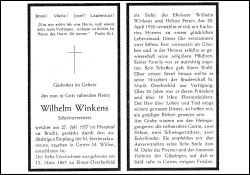 Eltern: Wilhelm Winkens u. Helene geb. Peters; ∞ 20.4.1920 Katharina Hormes; 2 Söhne; Mitgl. Bruderschaft St. Mariä Overhetfeld, über 20 J. deren Präsident u. 10 J. Ehrenpräsident |