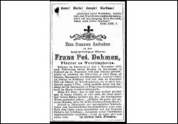 Priesterweihe 21.12.1844 Roermond in Holland; je 2 J. Pfarrvikar zu Haaren, Braunsrath u. Rheindahlen; 7 J. Pfarrer zu Nothberg; seit 24.12.1857 Pfarrer zu Wevelinghoven |