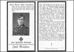 Gefallener 2. Weltkrieg; Eltern: Peter Maaßen, † 6.3.1929 an im 1. Weltkrieg zugezogener Krankheit, u. Anna geb. Mertens; 21.8.1940 Reichsarbeitsdienst; 7.2.1941 zum Heer; Druck in Waldniel |