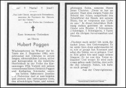 Taufe am 2.12.1902; Eltern: Heinrich Paggen u. Katharina geb. Schroeder, beide †; 2 Schwestern (Josefine, Hubertine) †; Druck in Geilenkirchen-Tripsrath |
