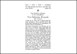 ∞ 20.1.1919 Michael Wynands; nahm Pflegetochter an |