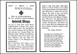 Gefallener 2. Weltkrieg; Eltern: Hubert Wings u. Barbara geb. Offergeld; beide †, ebenso Schwester †; ∞ 3.12.1942 Luise Rademacher aus Aachen; die Geburt seines Kindes, Tocher Marieluis, erlebte er nicht mehr |