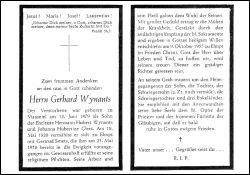 Eltern: Hermann Hubert Wynants u. Johanna hubertine geb. Clerx; ∞ 18.5.1920 Gertrud Smets, † 25.5.1950; 2 überlebende Kinder, 1 Schwiegersohn im 2. Weltkrieg vermisst |