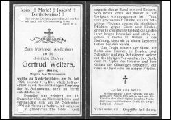 Mitgl. Mütterverein; ∞ 29.9.1903 Hermann Welters; 3 K., davon 1 †; |