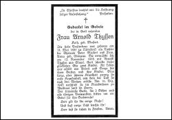 Eltern: Peter Mustert u. Anna geb. Clemens; ∞ 12.11.1918 Arnold Thyssen aus Elmpt; 2 K. |