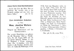 Mitgl. Mütterverein u. Rosenkranzverein; ∞ 29.8.1890 Johann Gerhard Wolters, † 11.4.1922; 7 K., davon 4 †, darunter 1 Sohn im Ersten Weltkrieg gefallen; Druck in Waldniel |