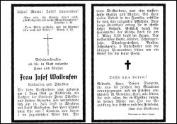 Eltern: Peter Schröder u. Helene geb. Gerards; ∞ 15.7.1918 in Wegberg Josef Wallrafen; 7 K., davon 1 jugendl. †; lange Krankheit; Druck in Brüggen, Ndrh. |
