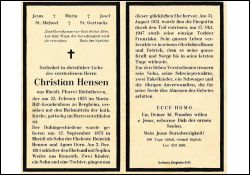 Wohnort: Rheidt; Eltern: Heinrich Hensen u. Agnes geb. Dorn; ∞ 2.12.1911 Sophia Weiler aus Ramrath, † 31.8.1931; 2 K., davon Tochter Franziska † 17.10.1947; sein ganzes Leben im elterlichen Haus und Betrieb |