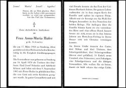 Eltern: Paul Josef Schmitz u. Adelheid geb. Könen; ∞ 9.9.1905 Peter Hofer; 6 K.; Goldhochzeit; Druck in Dormagen |