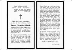 Eltern: Conrad Schmitz u. Adelheid geb. Rösgen; ∞ 28.4.1910 Christina Breitmar aus Nievenheim; 4 K., davon 1 früh †, Sohn Franz mit 15 1/2 J. †; 34 J. im Dienst der Reichsbahn; |