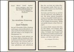 Lange, schwere Krankheit; Eltern: Paul Schmitz u. Agatha geb. Lemper; ∞ 9.1.1909 Helene Pesch; 7 K., davon 2 Söhne im 2. Weltkrieg gefallen |