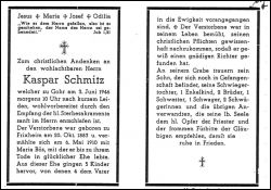 ∞ 6.5.1910 Maria Bös; 5 K., davon 4 †; 1 überlebender Sohn noch in Kriegsgefangenschaft |