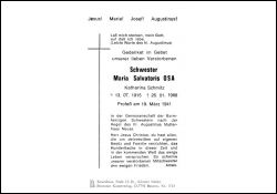 Maria Salvatoris, OSA, Sr., geb. Schmitz | Vorname: |
