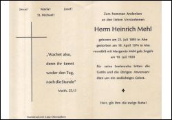 ∞ 10.7.1920 Margarete Engels; Druck in Oberaußem |