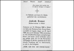 Bäckermeister in Wehl; Eltern: Ehel. Hub. Simon Esser; ∞ 27.4.1909 Agnes Jäger, † 8.10.1956; 2 K. |