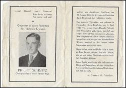 Gefallener 2. Weltkrieg; Eltern: Theodor Schmitz u. Margaretha geb. Maus; |