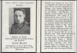 Gefallener 2. Weltkrieg; Eltern: Josef Wolff u. Apollonia geb. Schmitz; Jan. 1940 Einberufung; Einsatz in Frankreich, Norwegen, Sowjetunion; 2 Brüder ebenfalls gefallen: Johannes Wolff, gef. 30.9.1942, Anton Wolff, Gef. 24.1.1944; Bruder Eduard seit 16.4.1944 vermisst |