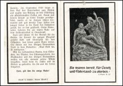 Gefallener 2. Weltkrieg; ∞ 26.7.1940 Elisabeth Hellenthal aus Düren; 1 K.; Sept. 1940 Einberufung; Einsatz im Osten; im Jan. 1943 schwer verwundet, wenige Tage später auf einem Hauptverbandsplatz †; Heldenfriedhof in Storobelsk; Druck in Düren |