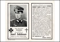 Gefallener 2. Weltkrieg; Eltern: Christian Schlösser u. Helene geb. Bosen; Angestellter der AEG in Köln; 5.5.1940 Einberufung; zunächst in Frankreich, seit 22.6.1941 Russland; sein Vater war im 1. Weltkrieg gefallen; Druck in Lechenich |
