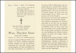 Langes Leiden; ∞ 31.1.1903 in Nettesheim Theodor Esser, †; 7 K., davon 2 †; Wohnort: vedrmutlich Nettesheim |