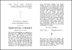 Landwirt; Bürgermeister von Elmpt; Eltern: Wilhelm Josef Coenen u. Maria Catharina geb. Lütters; ∞ 9.2.1926 Gertrud Mevissen, † 11.3.1929; ∞ 25.10.1938 Christine van Horrick; 2 K.; jahrzehntelang Bürgermeister von Elmpt; |