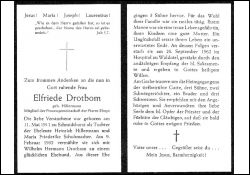 Tod durch Unglücksfall; Mitgl. Frauengemeinschaft Elmpt; Eltern: Heinrich Hillermann u. Maria Friederike Schuhmacher; ∞ 9.2.1932 Wilhelm Hermann Drotbom; 3 Söhne |