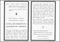 Jungfrau; Eltern: Wilhelm Derix u. Maria Theresia geb. Sanders; langwierige schwere Krankheit; Druck in Brügge, Ndrh. |