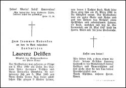 Landwirt; Mitgl. Kirchenvorstand Elmpt; Eltern: Peter Hermann Delißen u. Anna Katharina geb. Stemkens, † 15.3.1932; ∞ 5.5.1895 Anna Sofia Teven; 9 K., davon 1 †; |
