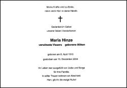 Hinze, geb. Böken, verw. Vissers