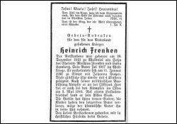 Gefallener 2. Weltkrieg; Eltern: Mathias Frenken, im 1. Weltkrieg 1917 gefallen, und Sofia geb. Lambertz; ∞ 11.1.1936 in Elmpt Johanna Gotzen; 4 K. |