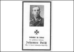 Gefallener 2. Weltkrieg; Eltern: Leonhard Busch u. Anna geb. Leven; nach Reiochsarbeitsdienst am 1.12.1938 zum Heeresdienst; am 16.10.1944 im Osten schwer verwundet; Druck in Dülken |