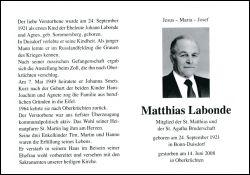 Mitgl. St.-Matthias- u. St.-Agatha-Bruderschaft; Eltern: Johann Labonde u. Agnes geb. Sommersberg; russische Kriegsgefangenschaft; danach Anstellung beim Zoll, dadurch nach Oberkrüchten gekommen; ∞ 7.5.1949 Johanna Smets; 2 K.: Hans-Joachim u. Agnete; danach aus berufl. Gründen in die Eifel verzogen; 1964 Rückkehr nach Oberkrüchten; kommunalpolitisch aktiv |