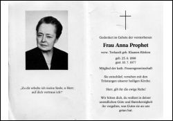 Prophet, geb. Klaasen-Rösken, verw. Terhardt | Vorname: |