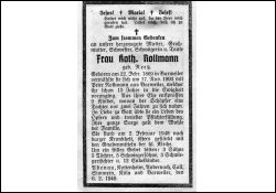 ∞ 17.11.1893 Peter Rollmann aus Barweiler, vor 15 J. †; 9 K., davon 1 Tochter vor 2 J. †; |
