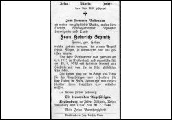 Opfer 2. Weltkrieg: Opfer eines Fliegerangriffs; ∞ 25.8.1942 Heinrich Schmitz aus Süchteln; Druck in Daun |