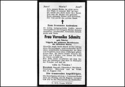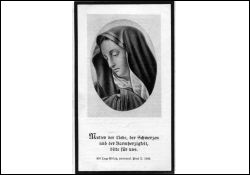 64 J.; Herzschlag; 37-jährige Ehe; 9 K., davon 1 Sohn im 2. Weltkrieg im Osten vermisst; Trägerin des goldenen Ehrenkreuzes der deutschen Mutter (Mutterkreuz); Druck in Wittlich |