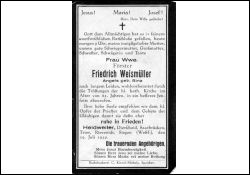 82 J.; langes Leiden; ∞ Förster Friedrich Weismüller; Druck in Speicher |