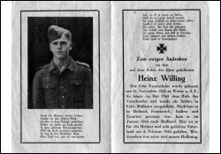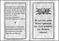Gefallener 2. Weltkrieg; Einberufung Mai 1943; Einsatz in Holland, Frankreich, Italien, Kroatien, Jan. 1944 Russland; Druck in Werne an der Lippe |