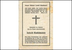 Eltern: Hermann Kuhlmann und Anna Froitzheim; ∞ 1938 Erna Diehl aus Köln; 1 Tochter.; im Kriegsgefangenenlager verunglückt; Opfer 2. Weltkrieg |